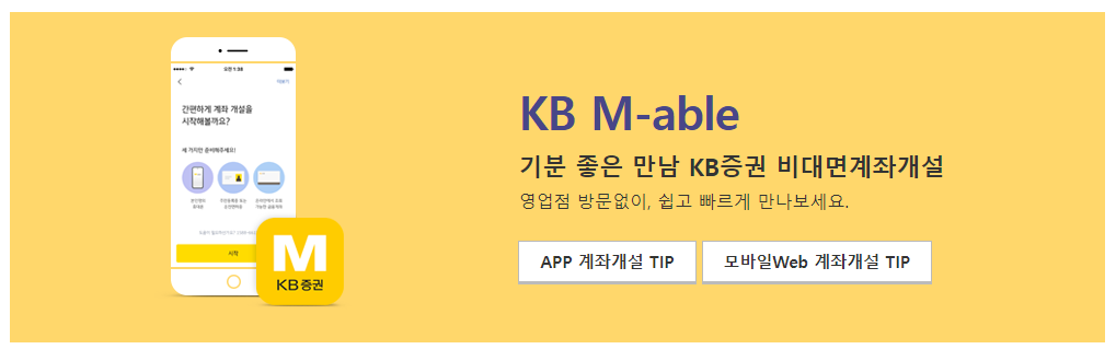 KB증권 계좌 개설은 매우 간단합니다. 모바일 앱인 'KB증권 M-able'을 통해 쉽게 계좌를 개설할 수 있습니다. 제가 직접 경험한 과정은 다음과 같습니다.